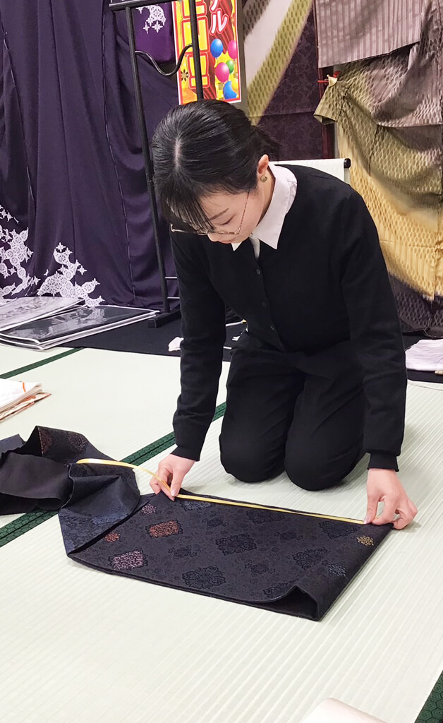 最近は、業務の隙間時間を使って自分で着物を着られるようになるための練習をさせてもらっています。