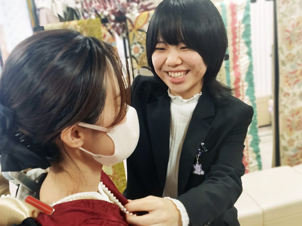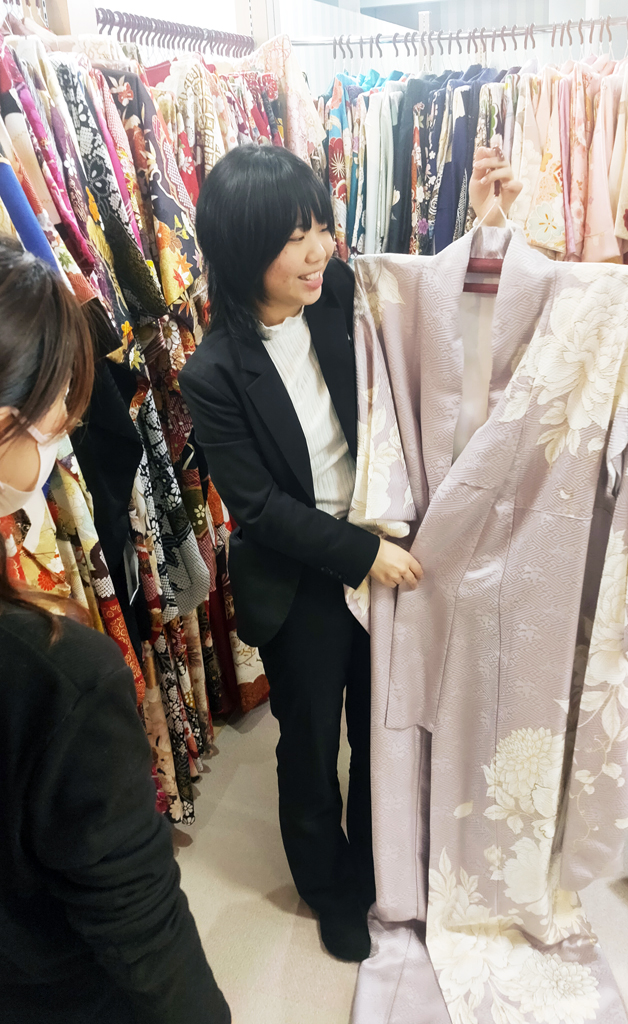 しかし何件か袴の接客などをしていくうちにお客様にも楽しんでもらえて自分自身も楽しく接客ができているので、今後もたくさん喜んでいただけるようにがんばりたいです!